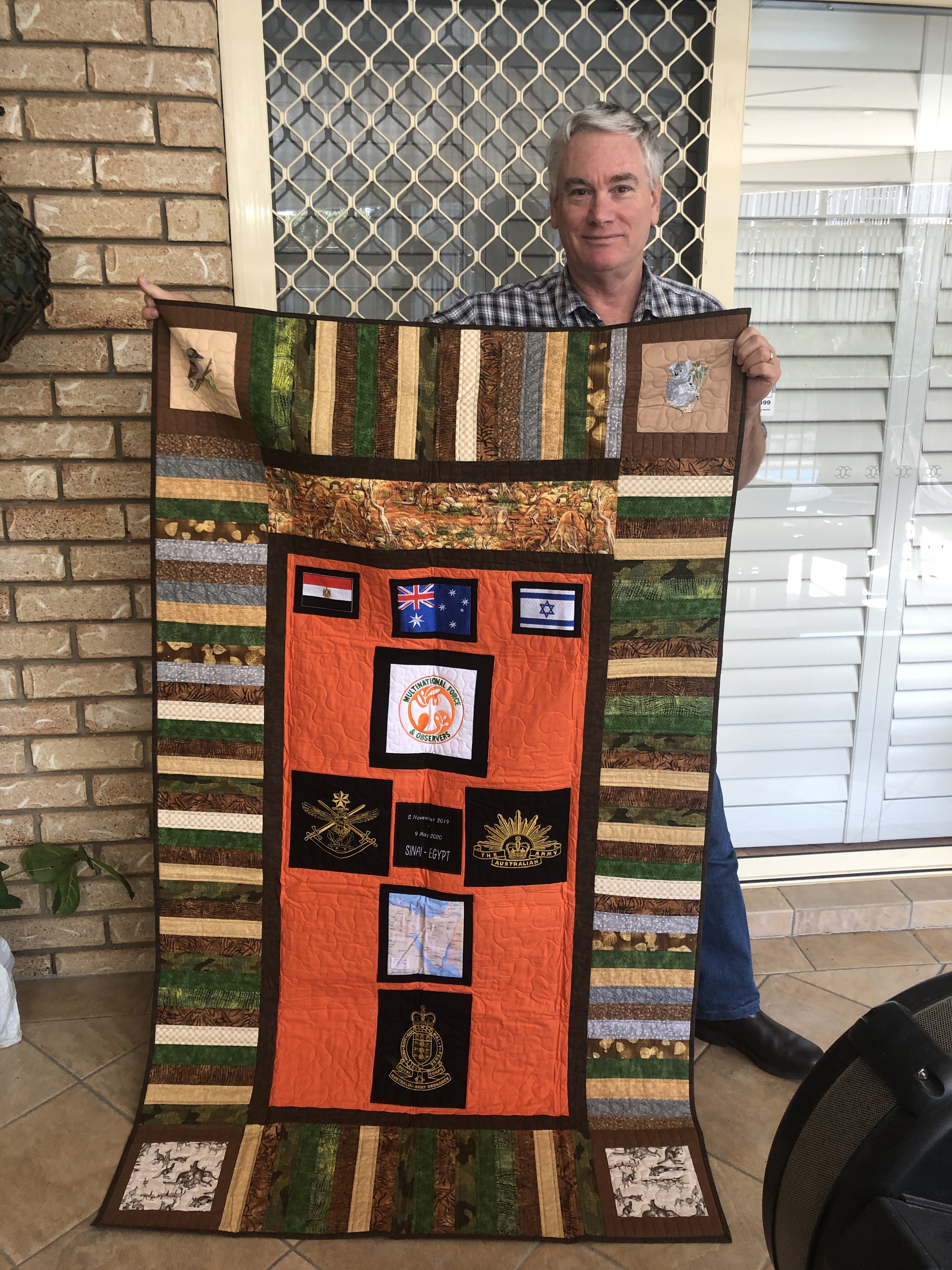 When I get home, we will start preparing for an interstate move, where I will be taking command of a Battalion. I will cherish my quilt, it has already added a welcome splash of colour to my very Spartan accommodation. My work here results in me travelling regularly. It is really nice to come home back to the accommodation and see such a colourful reminder of home. After all, the reason we are here is to ensure our country stays safe. It reminds me of our purpose here, which can sometimes get lost due to day to day frustrations.