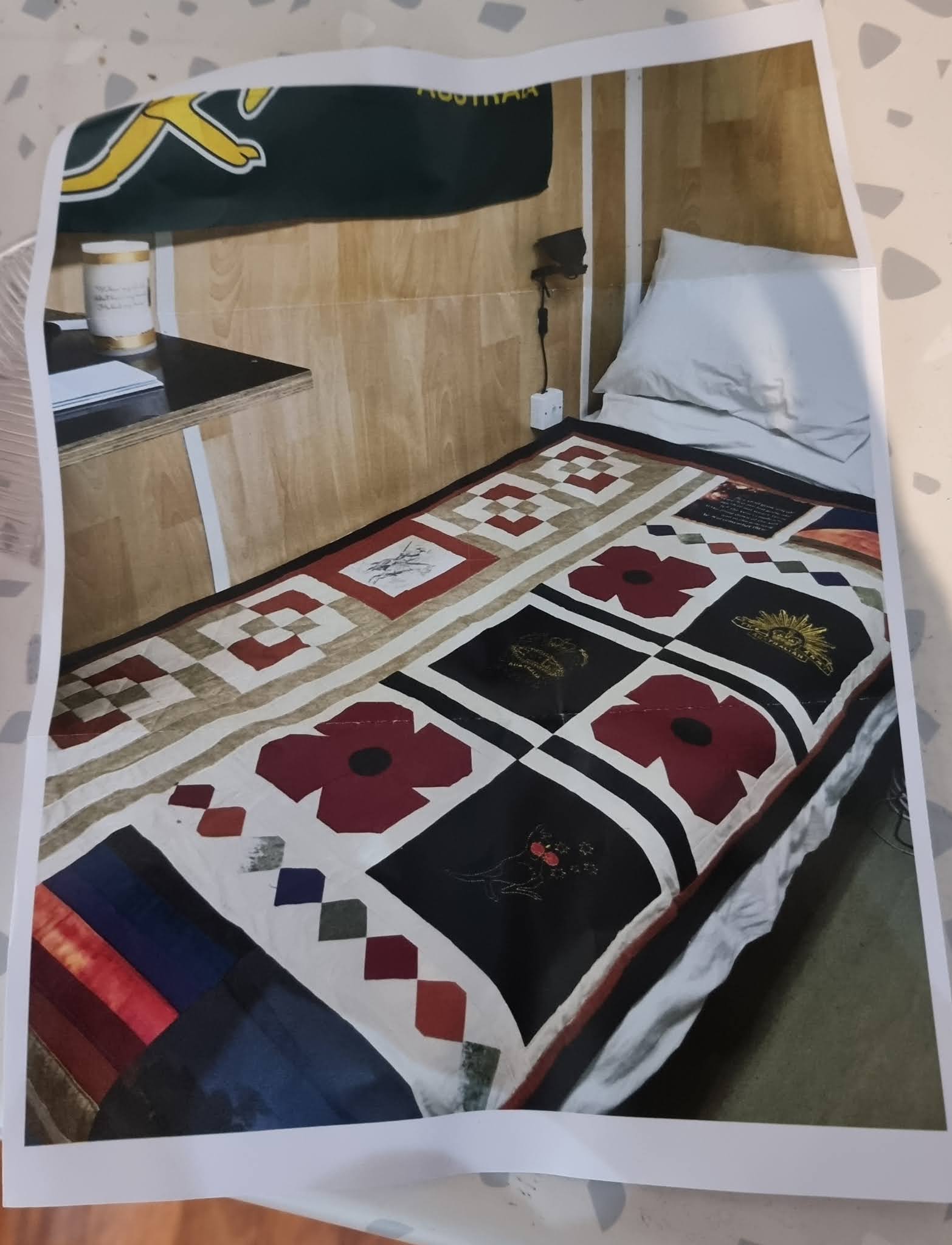 First up I want to say a huge thanks for my Aussie Hero Quilt designed and made by you. Wow! Is the only word I have to describe it.