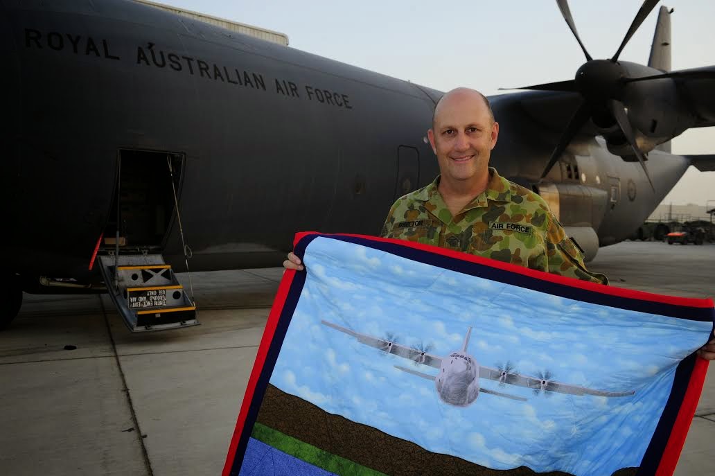 I have attached a photo of me with my quilt so hopefully a photo explains a thousand words on how much I appreciate your work and everyone with Aussie Hero Quilts who have made our deployment that little bit easier.