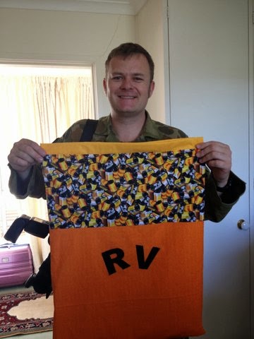 I wanted to write and thank you for my beautiful laundry bag. It is such a generous and thoughtful gesture to make something for a complete stranger as you have done for me. The environment we are deployed to is very grey – lots of concrete, gravel, dust, sand and absolutely no trees or grass. Your laundry bag has therefore brought some much colour to life over here and to my little sleeping space in the shared tent I live in. We use communal laundries, and they are a good five minute walk away (through that dust and sand), so a laundry bag is definitely a must-have item here. It is pretty cool to have one as funky as the one you made me! A deployment can feel pretty long and drawn out when you are away from home, and receiving a gift such as yours is a great morale lifter. Thank you again for your kindness. I will look to pay it forward in some way, and I hope that one day you too are on the receiving end of such generosity.
