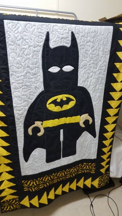 Hi guys my quilt has arrived and it is amazing! The finer detail sewn on is awesome as i didn’t notice it all straight away but when I had a closer look batmans utility belt I could see how the detail had been added. To Jacqui. Thank you so much! You have easily made my week smile emoticon. Not only for sending me such an amazing quilt but including the batman torch from your grandson really means a lot to me.