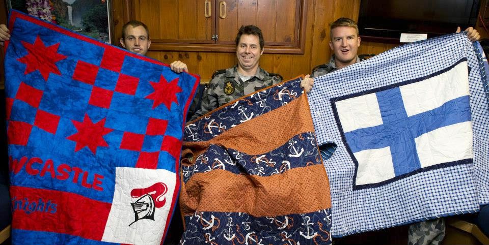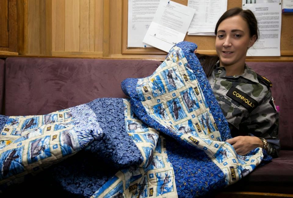 Excited Darwin sailors recently received the first delivery of hand-made quilts from Aussie Hero Quilts (and Laundry Bags)