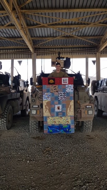 Having said that, your quilt could not have come at a better time. To some it may be just a quilt, but to me it’s a physical reminder of the love and support from people back home and it makes me proud to have served my country. It is the support from people like you that makes all the difference to the lives of the deployed ADF men and women. Yours and all Aussie Hero Quilts bring smiles to all who receive them.