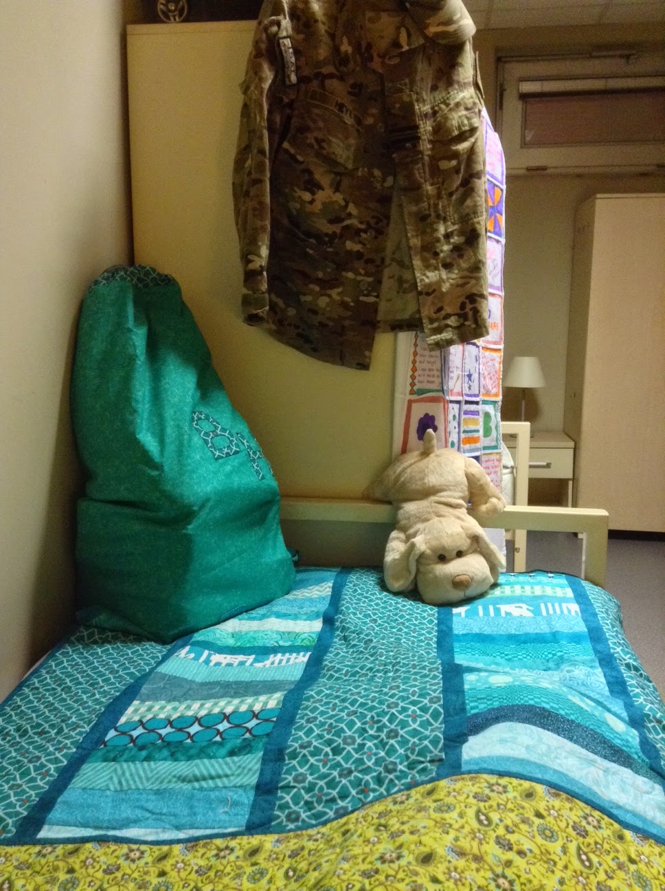 I’ve been in Afghanistan for 4 months now. Early in the piece someone gave me a form I could fill in if I wanted a quilt and/or a laundry bag. I thought, why not? I was the fourth one you made.