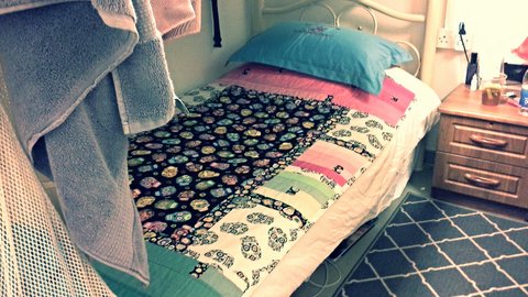 THANKYOU! so much for my beautiful quilt. it truly made my day when it arrived and it is perfect. I have used it for my meditation and it sits on my bed during the day. I will make sure I use it all the time; I used to have a habit of saving things for good and they would live in the cupboard for that ‘good’ day whenever that would be. Lovely to hear about you and your family. I am a Victorian girl so know the area that you live in and it is a great part of the country. I have always dreamed of having a beach house so hopefully one day can do something similar to you. Things over here are very busy at the moment. There are a lot of us here and people moving about so that keeps me and my crew busy as I am working with the Hercules aircraft so we move ‘stuff’ around. The base is really comfortable and I have my own room which is a huge bonus.  It is just nice to get quiet time when you need it. We had a lovely ANZAC day and I felt very proud to be here for the 100yr anniversary. It is starting to get hotter and before long it will be up to 50 degrees during the day….thank god for our aircon!! Anyway I am off now to start night shift. Thank you again for the quilt and your support, it means a great deal to us!!