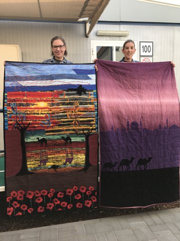 I would like to take this opportunity to thank you, Bev and Bridget for the amazing job that you did on my quilt. I think it is amazing and I truly appreciate the work that you all put into it. It will always be a special reminder for me of my first deployment with the ADF. I would also like to personally thank you for all your work in founding and running the Aussie Hero Quilts organisation. The work you do really is appreciated by deployed members, I can attest to that, but I have also witnessed the joy members of my team and the wider organisation have displayed when they have received one of your quilts and/or laundry bags. Your efforts and work is very much appreciated.