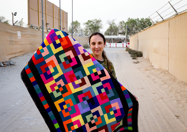 Thank you so much for your efforts in making my quilt and laundry bag. Your design exceeded all of my expectations. All of my friends and fellow soldiers loved it and are all hoping that theirs will be as great as mine turned out to be. You truly went above and beyond! The Treats you sent along with them were a nice surprise too. It’s safe to say they didn’t last very long.