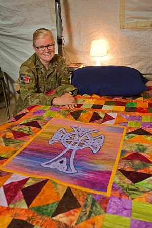 OMG! You ladies are absolutely fantastic. When I arrived back in Afghanistan from my leave, your quilt and laundry bag was waiting for me. It was a good pick me up after saying goodbye again to my wife and 2 year old son. I wasn’t sure how you would combine Collingwood, Melbourne storm and batman but you nailed it. Special thanks go to the hard work of Kay Czocharan for my amazing quilt and to Dianne Thomas for my awesome laundry bag. I have sent both you lovely ladies a little something from Afghanistan to say thank you, it was the least I could do. Thank you for the batman comics and newspaper articles, also thank you for the sweets. It was way too much and I am really appreciative, although I believe I don’t deserve it. Thank you once again, you ladies are amazing.