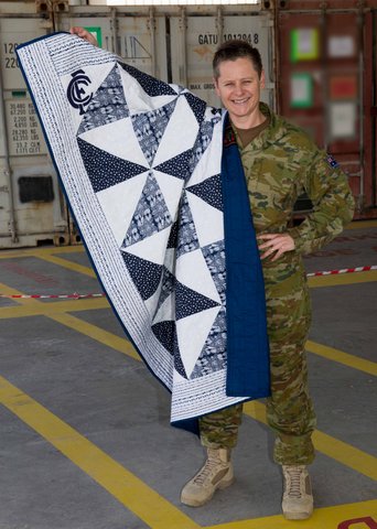I will ensure that I look after the quilt and have tucked it away as I do not want it to get damaged by the ships industrial machines, it is far too precious to me. I will try and send you some photos of myself and the quilt as soon as I can get them onto our computer network. Again I cannot say how much I loved the quilt and how much it made me smile, it has definitely been the highlight of my deployment.