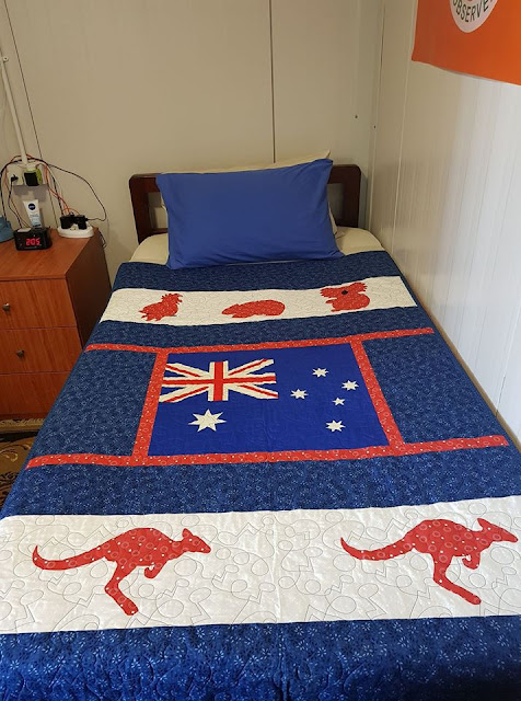 This is a quilt was made for me while on Deployment 2013/14 and now its on another Deployment with me in Sinai Eqypt 2017/18. I have taken this quilt on a number of deployments and show it off with pride. Thank You so much for your support and awesome efforts producing Quilts and Laundry bags for deployed Australian Defence Members…