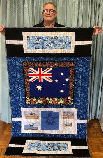 Thank you so much for the Aussie Hero Quilt you and Wendy made for me. I was totally unaware of this and was very surprised to be considered for it. I have to say that I do not see myself as any sort of hero, just a normal Aussie  privileged with the honour of serving his country through an awesome career that I would do about 90% all over again exactly the same way if given the chance. I was quite humbled by your most generous gesture when I received the package in the mail today. I am very lucky to have such a wonderful family to do what they did to receive this most prestigious gift.