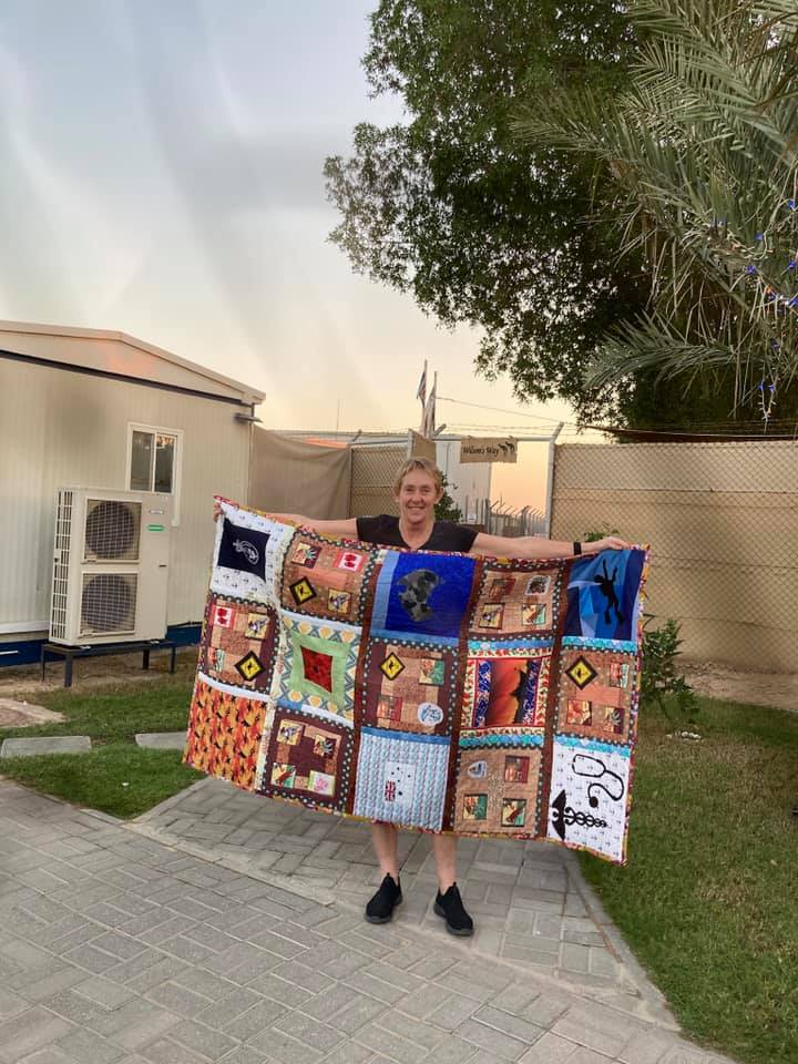 Life over here has been challenging amongst the corona pandemic, but luckily we have a good group of people to get us through our time here. We have been super busy which I enjoy, but nevertheless, I miss my family back home (and my collie which I love how you have included on my quilt).