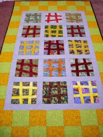 This quilt top was made by Louise and quilted by Evelyn and Robin and sent off by me.