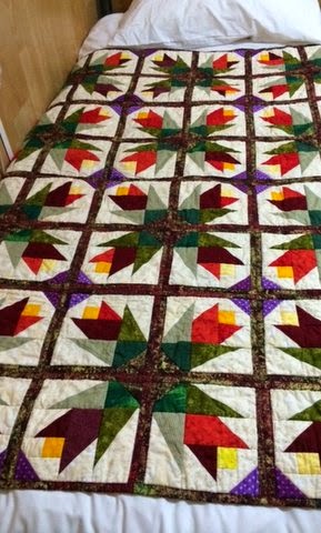 This quilt top was made by Louise and quilted by Evelyn and Robin and sent off by me.