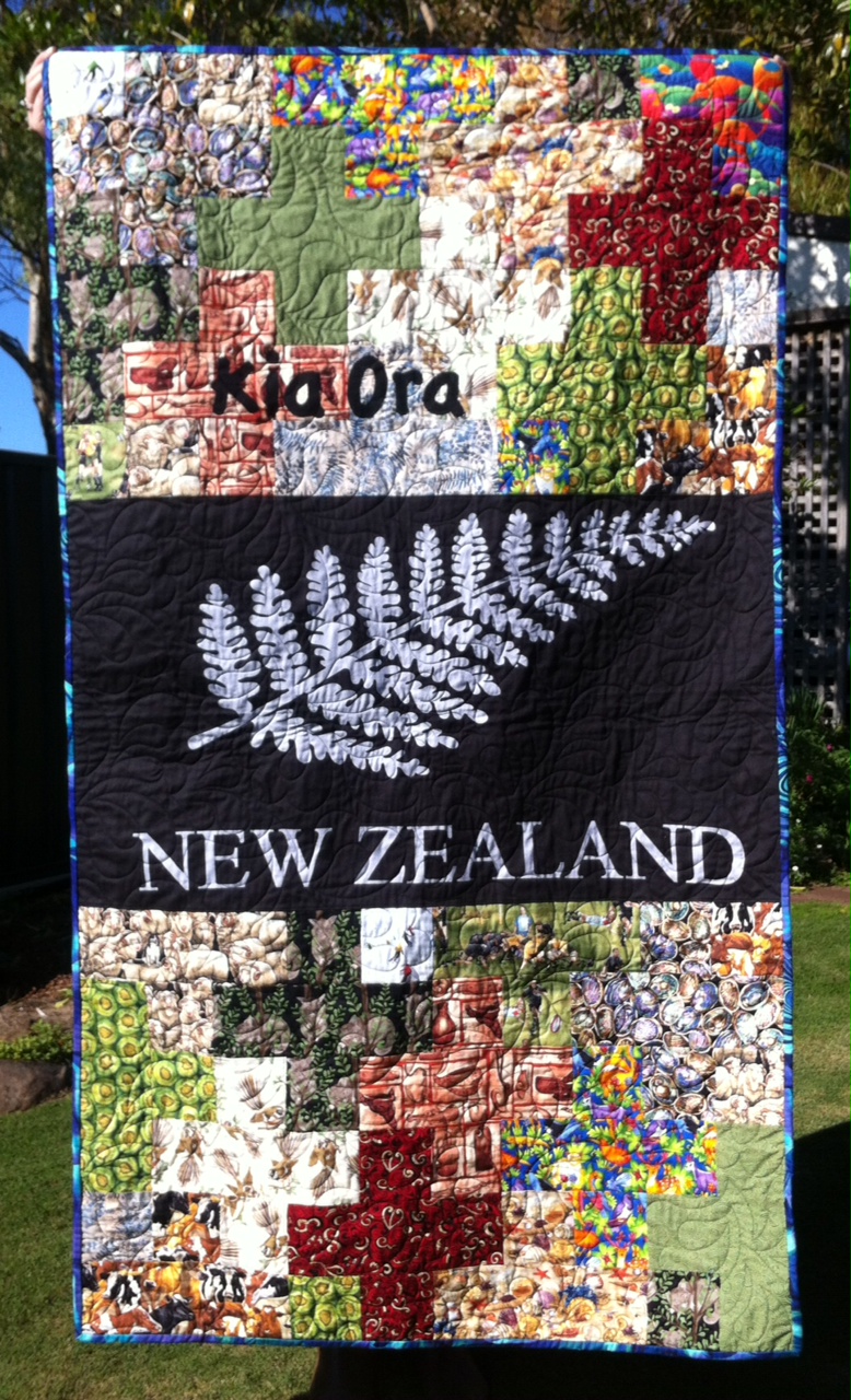 The following quilt is one that was sent specifically to hang in a communal welfare area in Iraq which will be shared by Aussies and Kiwis. This is the first to arrive. An Aussie themed quilt is also on its way. We don’t usually do these quilts as wall-hangings but the deployment in Iraq is just being established and conditions are not all that comfortable so a bit of colour and support goes a long way.