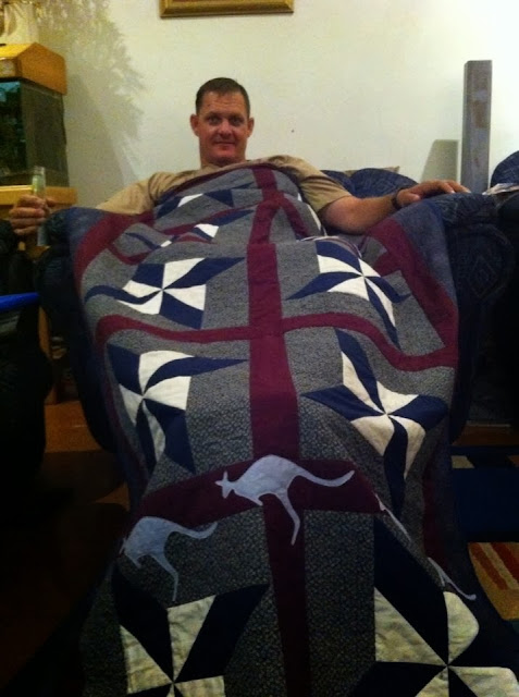 It is really nice to know people appreciate the work we do and people such as yourself are more then willing to give some of their time to bringing happiness to us Aussies serving overseas. It is a very admirable quality and I really am grateful for the time you spent making this quilt and laundry bag, oh and of course the treats.