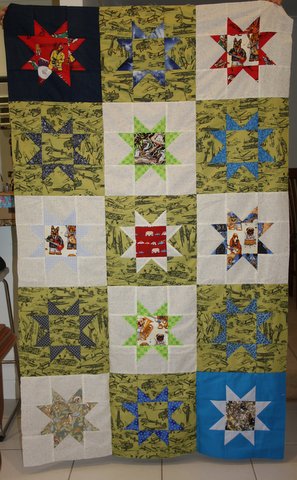 First up tonight… Maree delivered some quilt tops she has made from BOMs. Now the BOMS are from last year because poor Maree received the blocks and not long after fell down her stairs and badly broke her ankle… yikes! She is well on the mend now… and these quilts will be great to personalise for some lucky recipients….