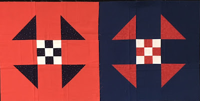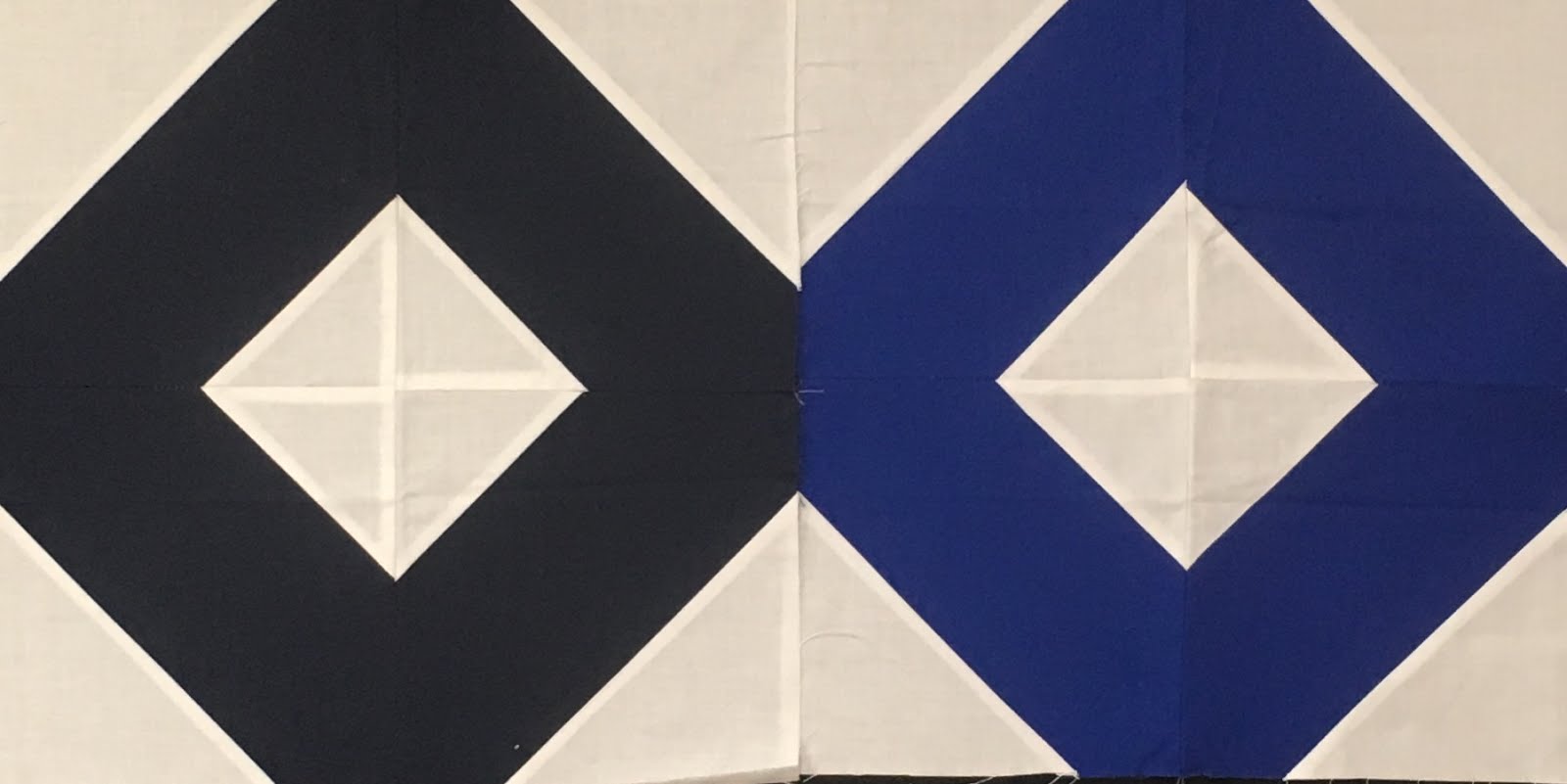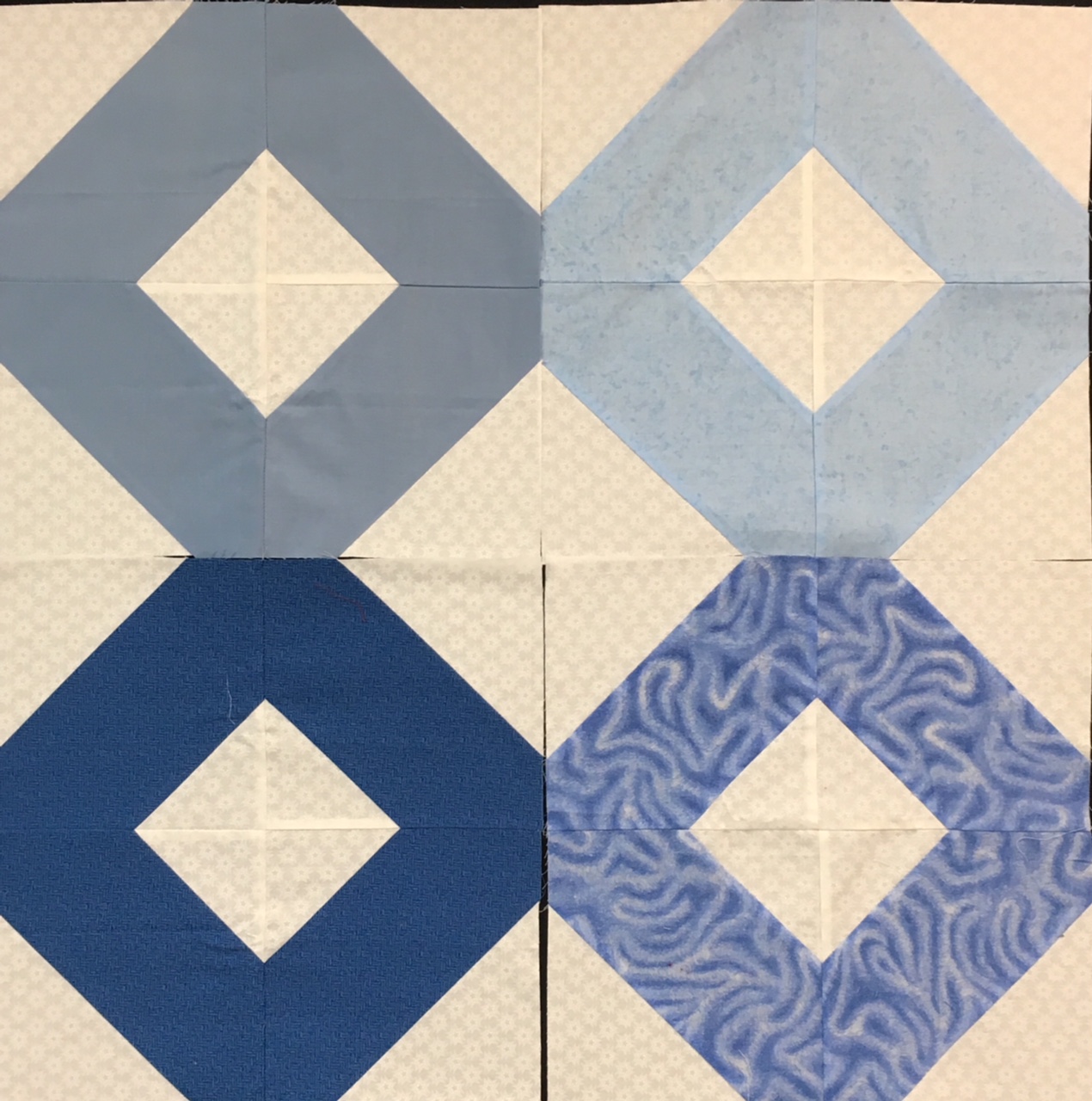 I love the way our BOM volunteers have played with the blues and white to create the Donut blocks.