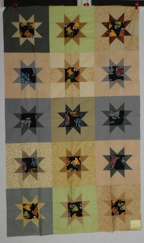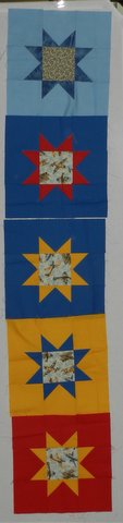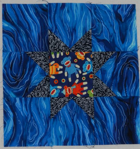 We have a whole galaxy of stars. Too hard to split them up but we have a blue girl’s quilt underway, a blue fellow’s quilt underway and then we have some BOM blocks. I will however tell you who made them all….