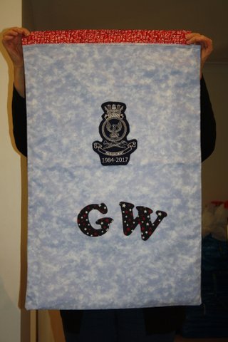 When the former Commanding Officers entered their accommodation they were greeted with some welcome gifts on their racks including a personalised commemorative laundry bag for each of them.