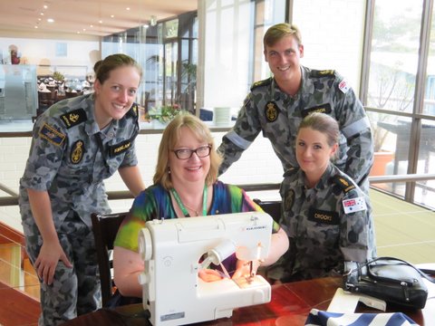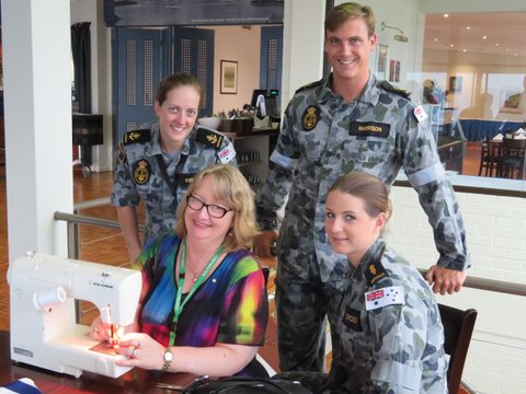 It turns out that the Leading Seaman and these two Able Seaman were given a task by their Chief Petty Officer. He had given them his sewing machine and some fabric and tasked them to complete a project… the only problem was that none of them knew how to use the sewing machine… so what could they do… Ahhhh there is the Quilt Lady… who else would you ask…. and I did not mind at all.