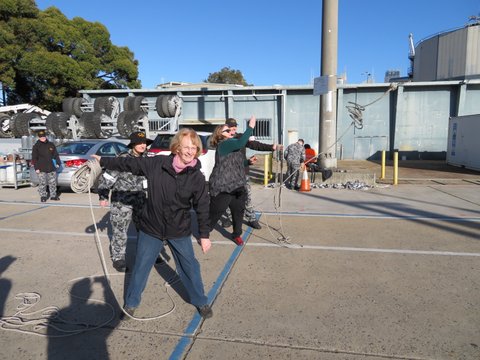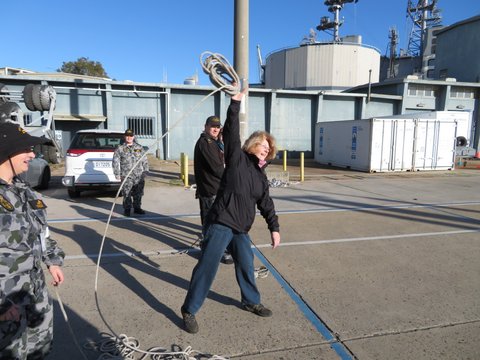 When I disembarked from the submarine some of the crew where heaving the line and I asked if I could have a go. So Jan Maree and myself had a competition as to who could throw the farthest. Let’s just say I could have won (I was standing on the rope not a good thing)