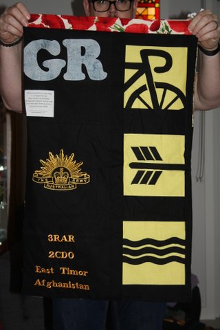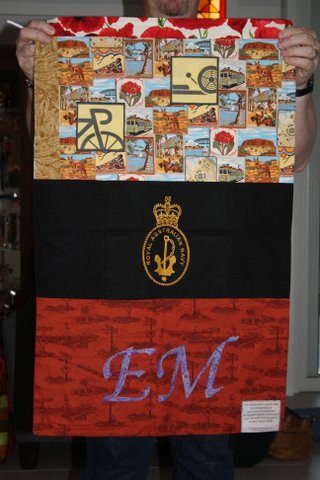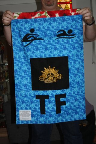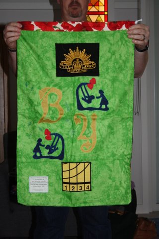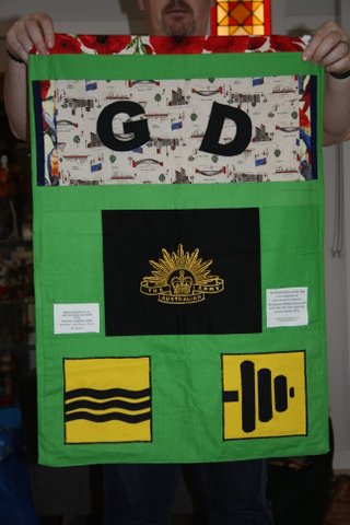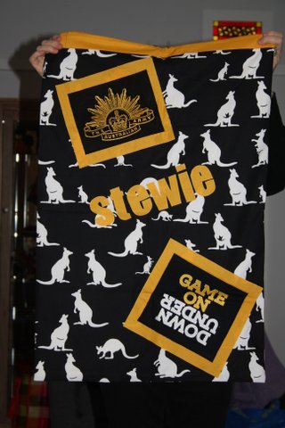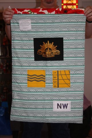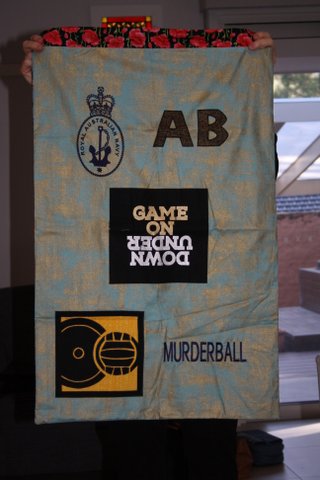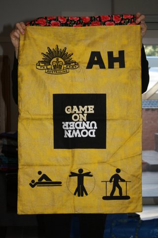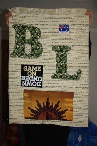 All the laundry bags for the Aussie Team have two sides… a Team Side, see below.. and a personal side, featuring the initials, service crest and more.  For the sake of brevity I am only posting one picture of the team side and then just the personal sides of each bag.