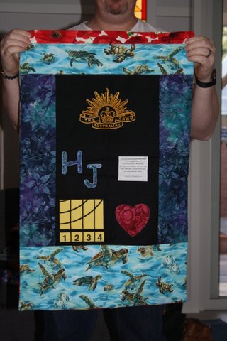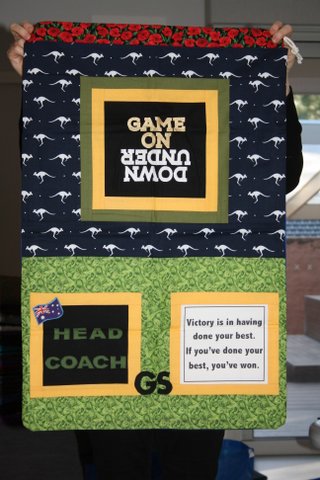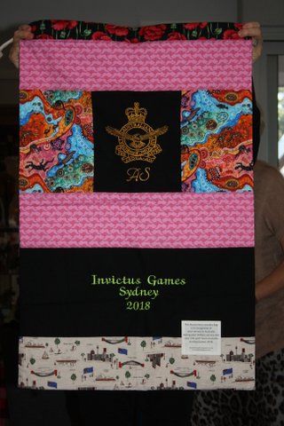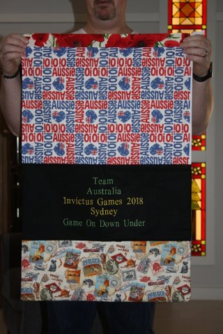 WOW!!! Today I had the great privilege of presenting the quilts and laundry bags to our Australian Invictus Games Team and their support team…….and what a privilege it is.  Those who have made these personalised bags have absolutely outdone themselves.