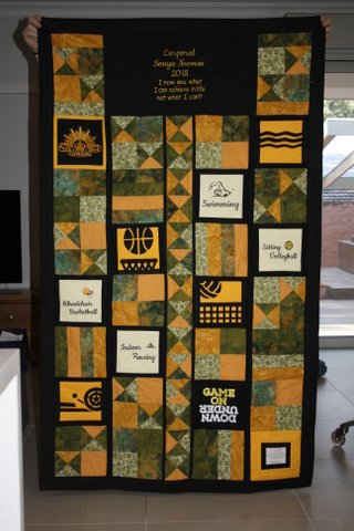 And now for the quilts for those that support the team, the admin people, physios, doctors, coaches, public affairs teams… and so many more…. We did not have the resources to personalise these as much but we still wanted to say thank you for their efforts, many of them also being veterans as well.