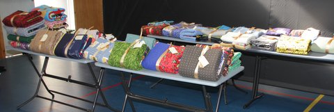 Andy and Jenny laying the quilts out…