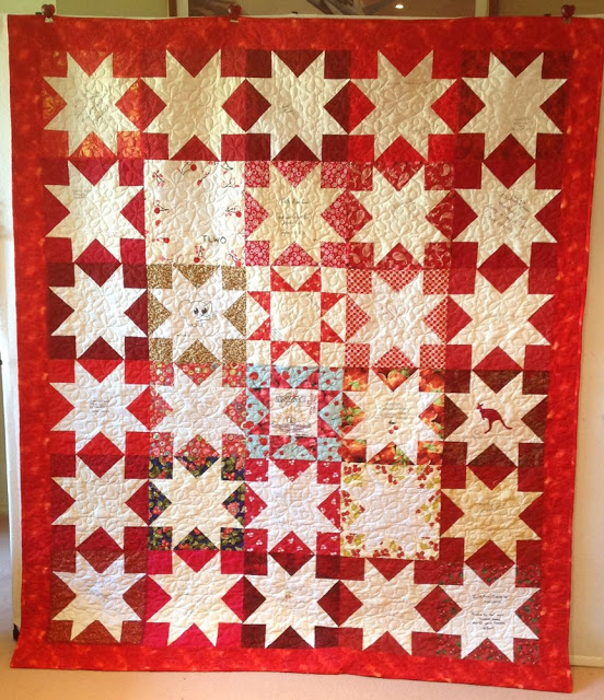 I’m not sure if everyone is aware of the signature quilt that 29 quilter’s and I organised as a gift for Jan-Maree way back in 2013 as a thank you for what she doe’s for Aussie Hero’s. Unfortunately this beautiful quilt was lost in the fire in June this year.