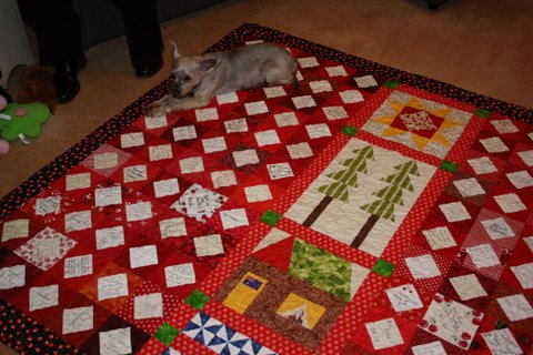 All the blocks were trimmed to size…….then arranged in a pleasing order around the centre block.
