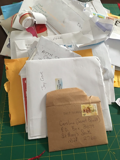Helen was in charge of collecting all the blocks from the Post Office box, Blocks, blocks and more blocks arrived for the quilt.