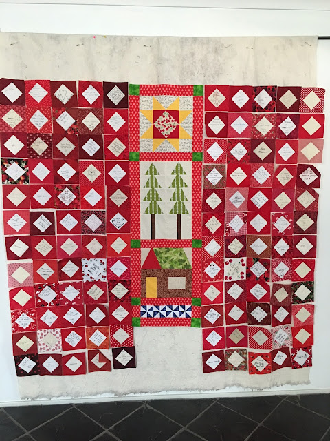 The quilt was bound and a hanging sleeve added so that JM could hang it in her new house and she will know that we were all thinking of her when life threw her a curve ball. Thank you to Sue G who hand stitched the binding in place.