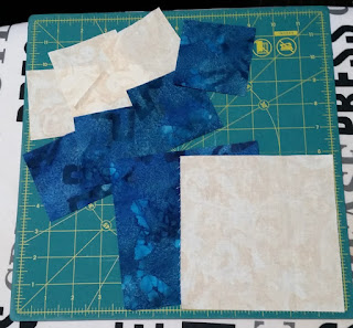 The fabric to use for this month’s block is a light tone-on-tone print (cream, white, ivory) and a darker tone-on-tone print (NO PINKS PLEASE AND NO MULTI-COLOURED PRINTS PLEASE)