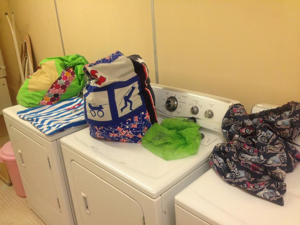 A few weeks ago I put a call out on Facebook for some pictures of laundry bags in action… I used to have a few but lost them all when my laptop was destroyed in the fire. I received a great selection from all over the place and am very grateful to those who answered the call. I wanted them to use in my powerpoint which accompanies my presentations from time to time.
