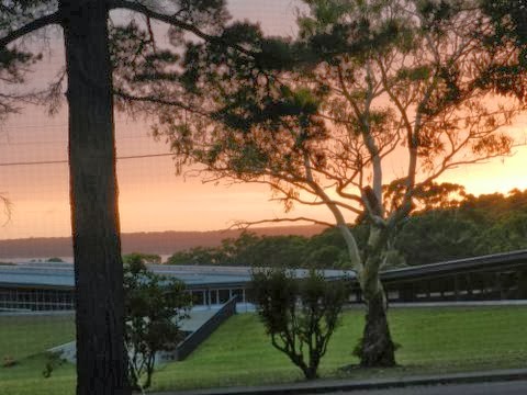 The surroundings are wonderfully peaceful.  This was my sunrise view on Saturday morning.  That is the gym and the swimming pool in the foreground and in the background is Jervis Bay.