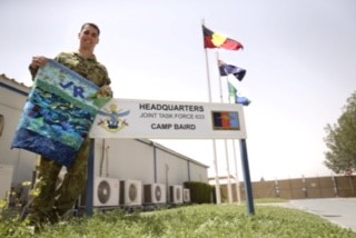 All of this wouldn’t be possible without the support from the Australian community and especially people like yourselves. It is really humbling to know that people do care about us and support us. AHQ are an awesome group of individuals who genuinely make a difference to our lives. The quilts give us something personalised and with character for our rooms and to show off to our work colleagues. On return to Australia it also gives us something we can look at to remind us of our adventures on the other side of the world. Mine is going to be hung up in my study along with my other Air Force memorabilia.