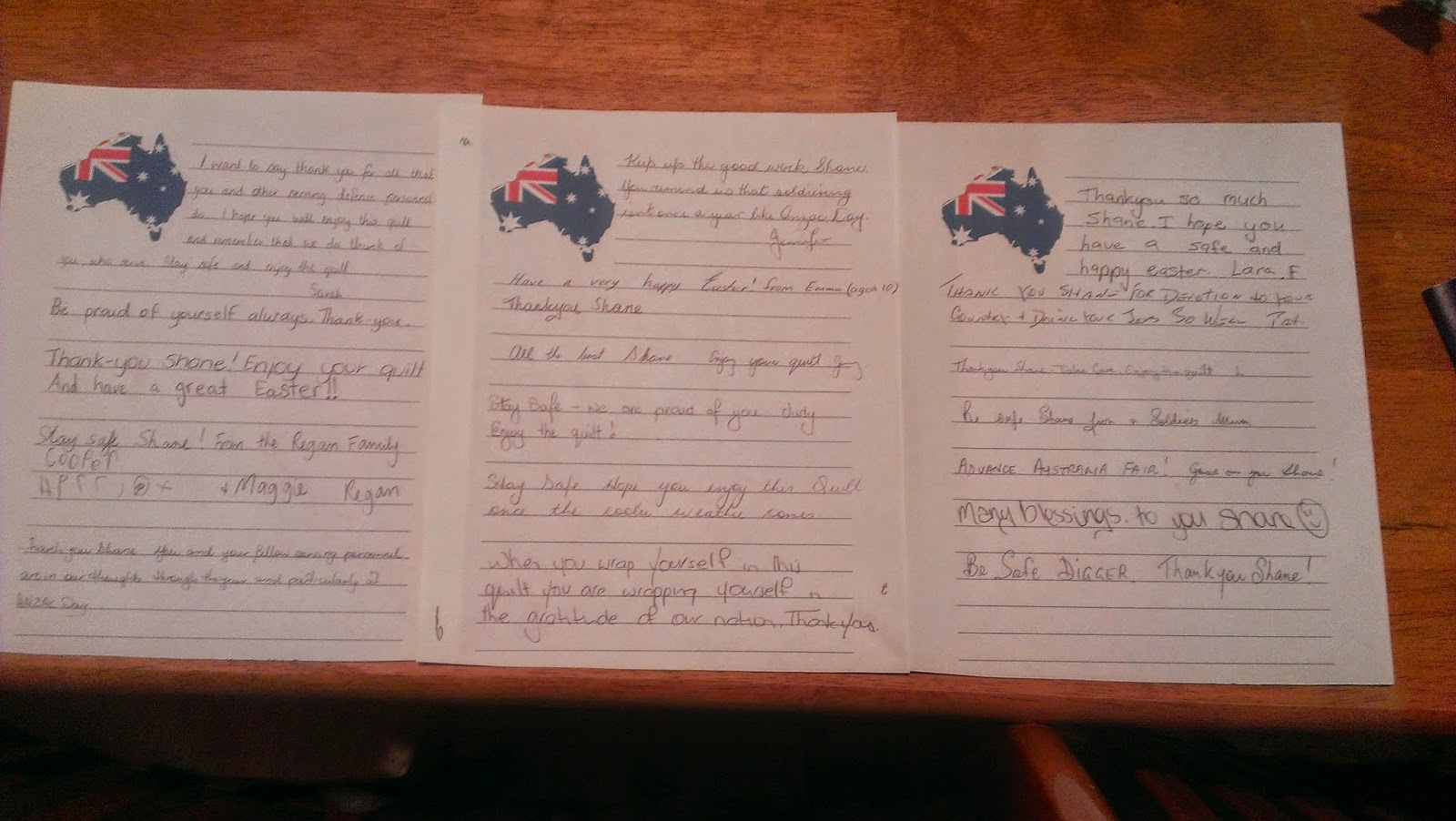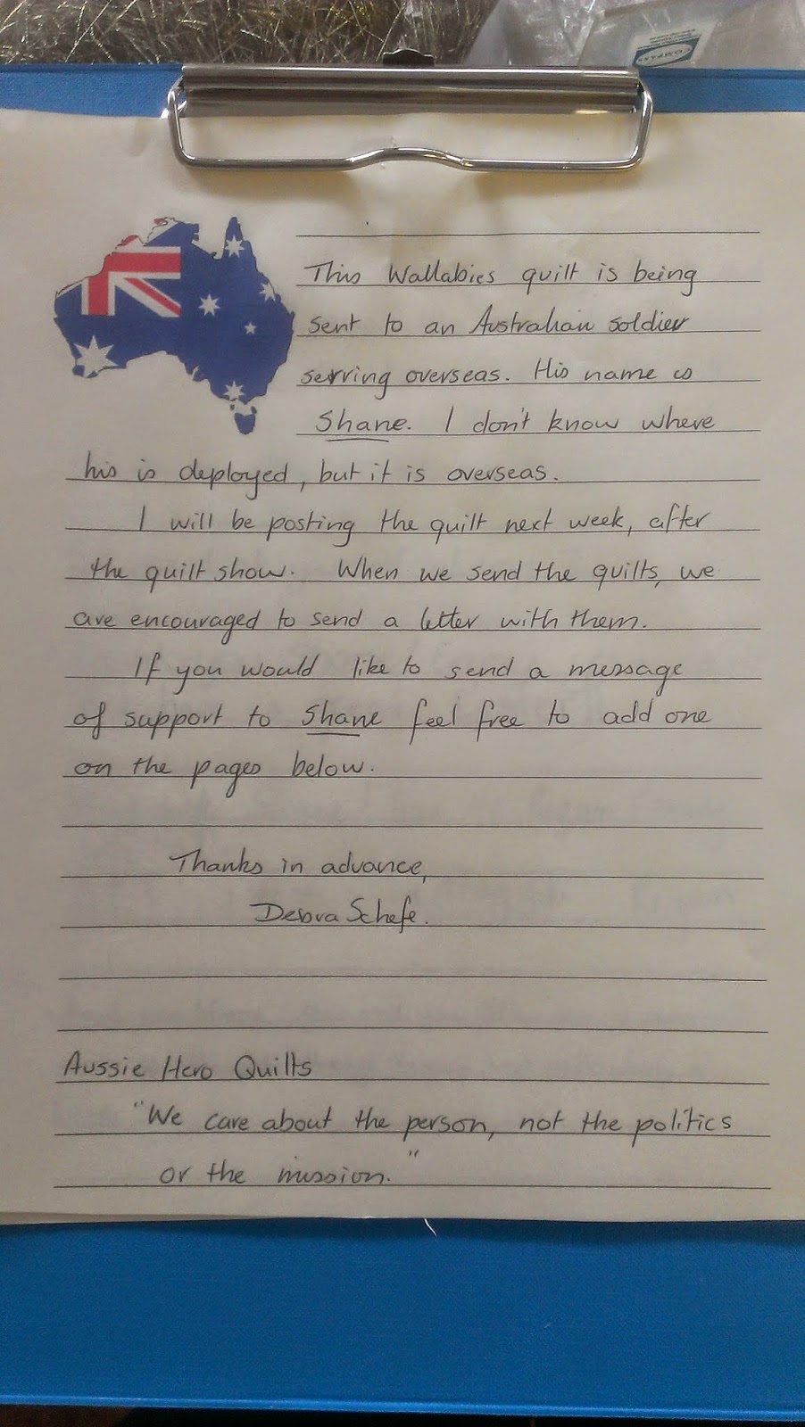 As she had a recipient name for the Wallabies quilt, she had placed note paper out for people to leave a message of support if they wished.