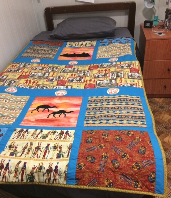 The MFO logo is perfect, with the Egyptian panels, this quilt will be my treasure received in the Sinai.