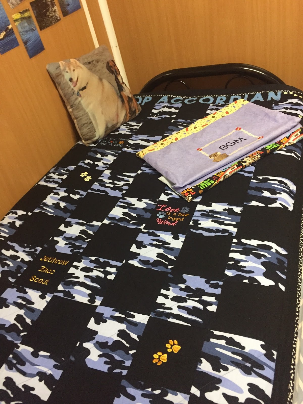A million thanks for devoting your time to making quilts and laundry bags for those of us deployed, it is such a wonderful gesture.