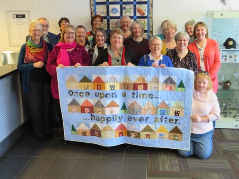 Those of you who had a hand in the making of both the Reading Room Quilts should be very proud of yourselves as the quilts came up beautifully. I was going to wait until the quilts had arrived in situ, so as not to spoil the surprise for those in location but I don’t think they will really mind if I share the photos here.