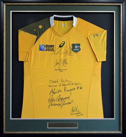 Thankfully, with the help of friends like Garry and Katrina (our wounded warrior and his wife) and another recipient, I managed to arrange for Ben Roberts-Smith VC, Daniel Keighran VC and Mark Donaldson VC to sign the jersey and then with Soldier On’s assistance Keith Payne VC signed as well. Finally it was sent to the wonderful girls from Lone Pine Medals who not only framed it beautifully, but also delivered it safely to me in time for me to deliver it to Canberra.