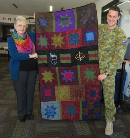 At 9am on Thursday morning CDF, in the company of Chaplain Willis, presented one of our Aussie Hero Quilts to a recipient who had worked for him in the past. I would have loved to be present but there was no way I could be at Russell Offices at 9am and then make it across to Joint Operations Command for the 10am morning tea. Katie L, one of our quilters who was connected to the recipient, was able to be represent us though. Chaplain Willis showed CDF the Reading Room Quilt and I am told that he was very taken with it, asking the chaplain to show it to everyone else who was there.