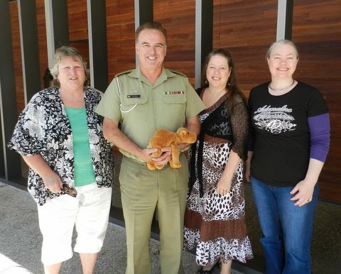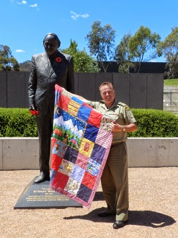 On Tuesday night I was treated to dinner by this gorgeous fellow.  He noticed that I was going to be in Canberra for the week at the same time as he was in town to start his handover for his new job for next year.   For ease I will call him G.  G was the first person, deployed as a peacekeeper in South Sudan in 2012, to discover Aussie Heroes and to contact me and see if we could include them in our list of recipients.    He sent me lots of info and photos for some posts and I made his quilt and laundry bag myself.  We have stayed in touch and earlier this year he let me know that his lovely partner was deployed to Kabul, where she later became one of my contacts and many of you would have sent her laundry bags to hand out.   G also deployed this year to Kandahar and may have received a care package or two from me.  Both G and his lovely partner will be at our Aussie Hero Christmas Dinner.