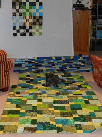 Beautiful quilts from Tarnyia! And Snickers models them so well!