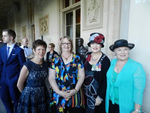 After all the awards were presented His Excellency made a few closing remarks before he and his wife withdrew. Finally we were all invited out on to the Veranda and into the gardens for refreshments. We were all encouraged to take a glass so that we would be prepared to toast the Queen’s impending birthday and to sing Happy Birthday to Her Majesty. Sandwiches and nibblies, (or smallie eats as the Navy calls them) were handed around with trays of champagne, wine, juice, soft drink and water making the rounds.