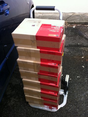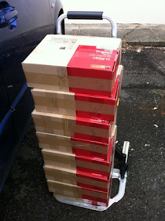 A little bit of yesterday. Here are the eight boxes I posted off yesterday. Another two boxes going tomorrow including a big one with four quilts in it.