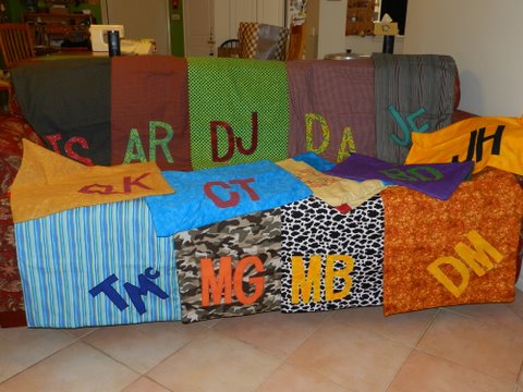 After all the pins ran out we took time to photograph the laundry bags that Cynthia has been making. Her son is in Afghanistan and she has collected initials and addresses of every son or daughter whose parents she has met at his farewell parade and various other functions since. She still has 13 laundry bags to make but this is a good start.