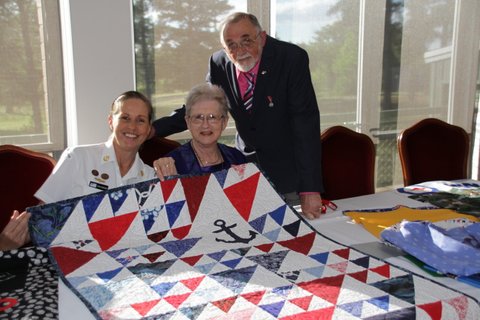 Chief Petty Officer Cath Harvey was finally able to meet her quilter, Lynn Field, and her husband Arthur.